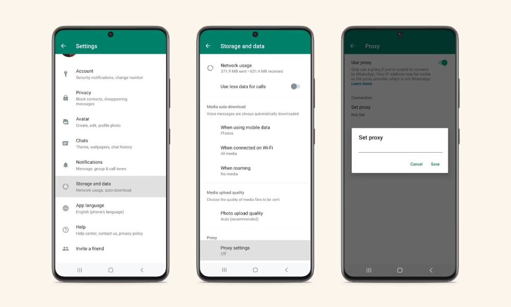 在 WhatsApp 上設置代理設置