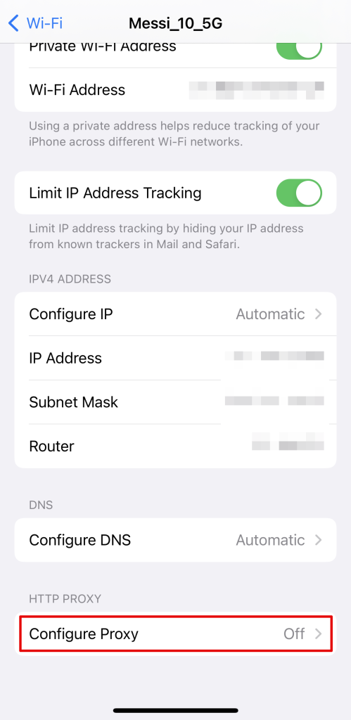 - 現在向下滾動,直到找到“配置代理”選項。